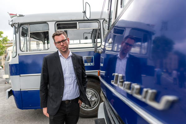 Vitézy Dávid főigazgató a Közlekedési Múzeum saját Ikarus 311-esében